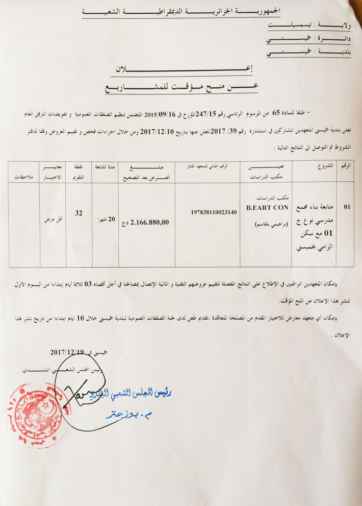 إعلان عن منح مؤقت للمشاريع 2017/12/19انشأ بتاريخ: الأربعاء، 20 كانون1/ديسمبر 2017 14:32 | نشر بتاريخ: الأربعاء، 20 كانون1/ديسمبر 2017 14:32