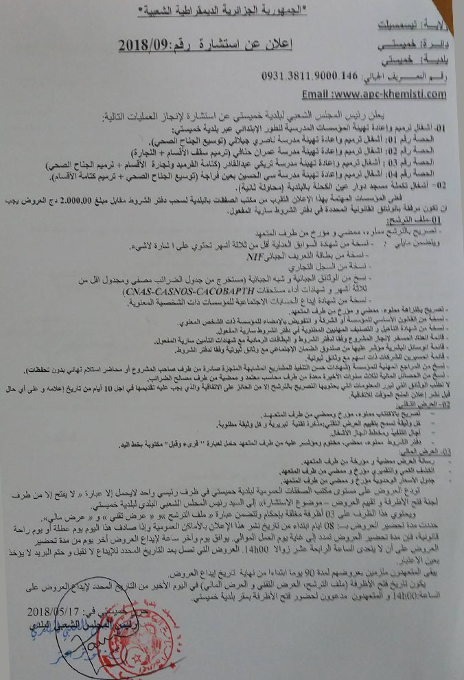 إعلان عن استشارة رقم 2018/09انشأ بتاريخ: الخميس، 17 أيار 2018 13:57 | نشر بتاريخ: الخميس، 17 أيار 2018 13:57
