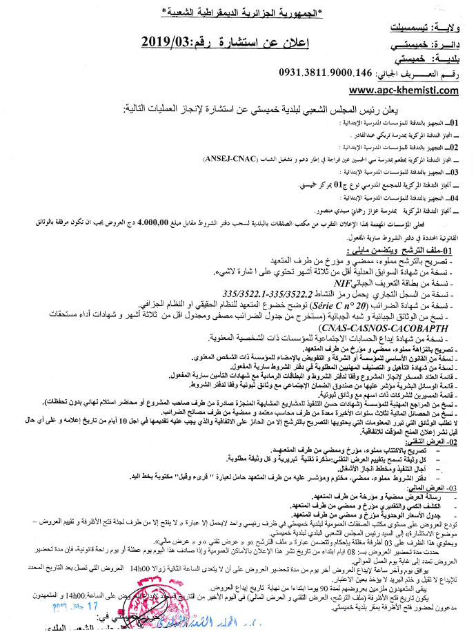 إعلان عن إستشارة رقم 2019/03انشأ بتاريخ: الخميس، 17 كانون2/يناير 2019 15:26 | نشر بتاريخ: الخميس، 17 كانون2/يناير 2019 15:26