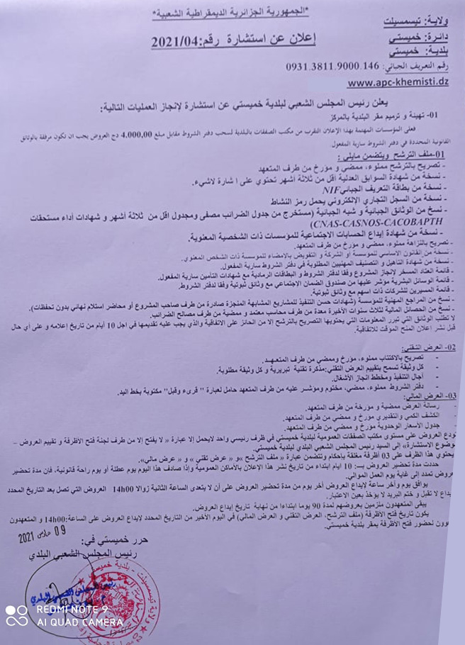 إعلان عن استشارة رقم 2021/04انشأ بتاريخ: الثلاثاء، 09 آذار/مارس 2021 15:04 | نشر بتاريخ: الثلاثاء، 09 آذار/مارس 2021 15:04