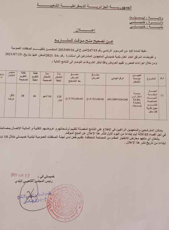 إعلان عن تصحيح منح مؤقت للمشاريعانشأ بتاريخ: الخميس، 12 آب/أغسطس 2021 14:46 | نشر بتاريخ: الخميس، 12 آب/أغسطس 2021 14:46