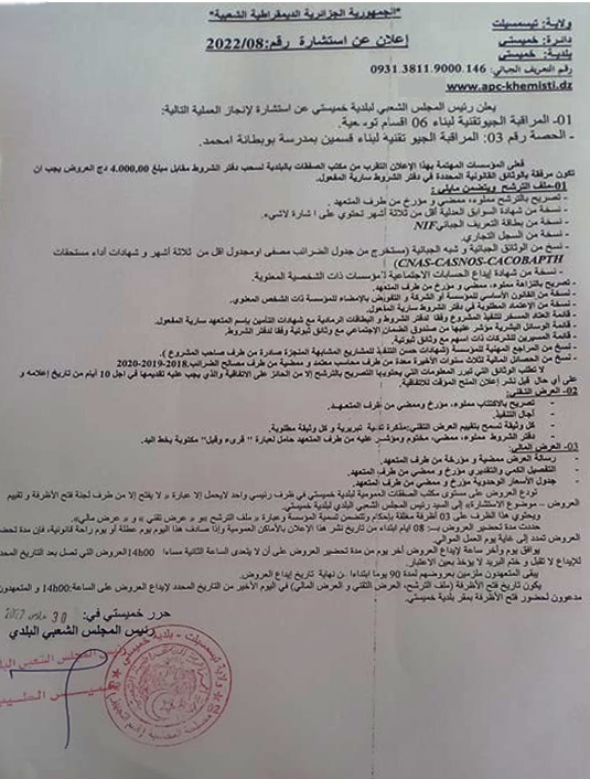إعلان عن استشارة رقم 2022/08انشأ بتاريخ: الأربعاء، 30 آذار/مارس 2022 15:28 | نشر بتاريخ: الأربعاء، 30 آذار/مارس 2022 15:28
