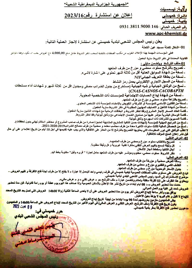 إعلان عن استشارة رقم 2023/16