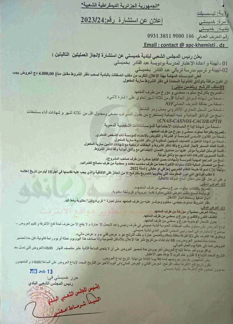 إعلان عن استشارة رقم 2023/24